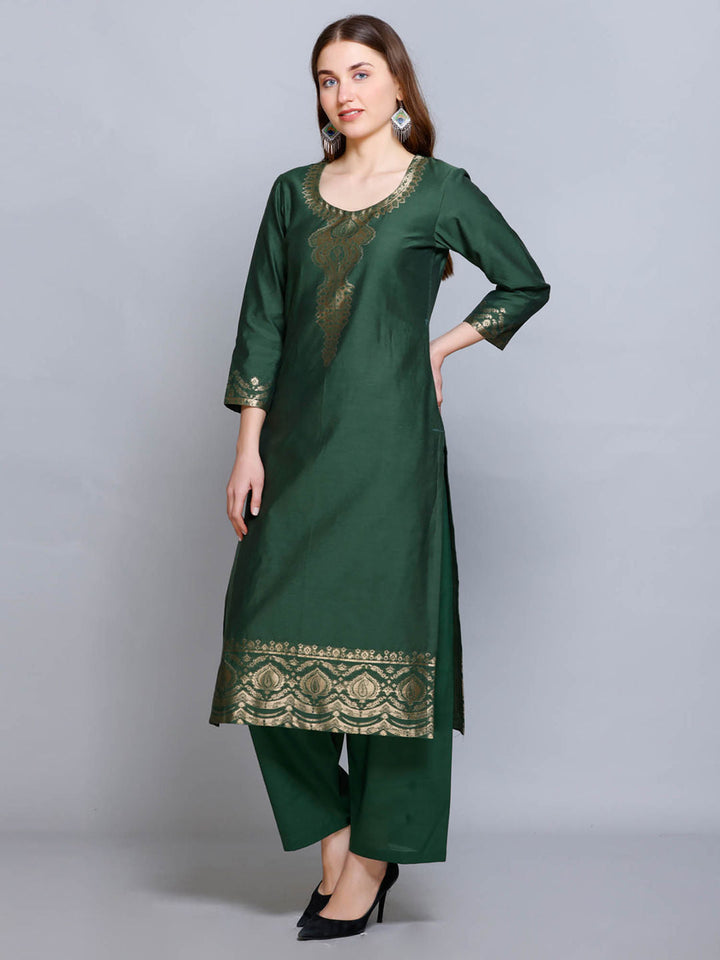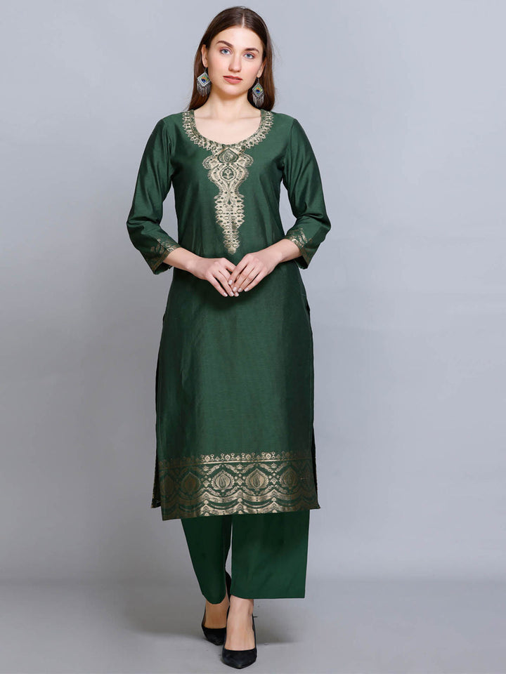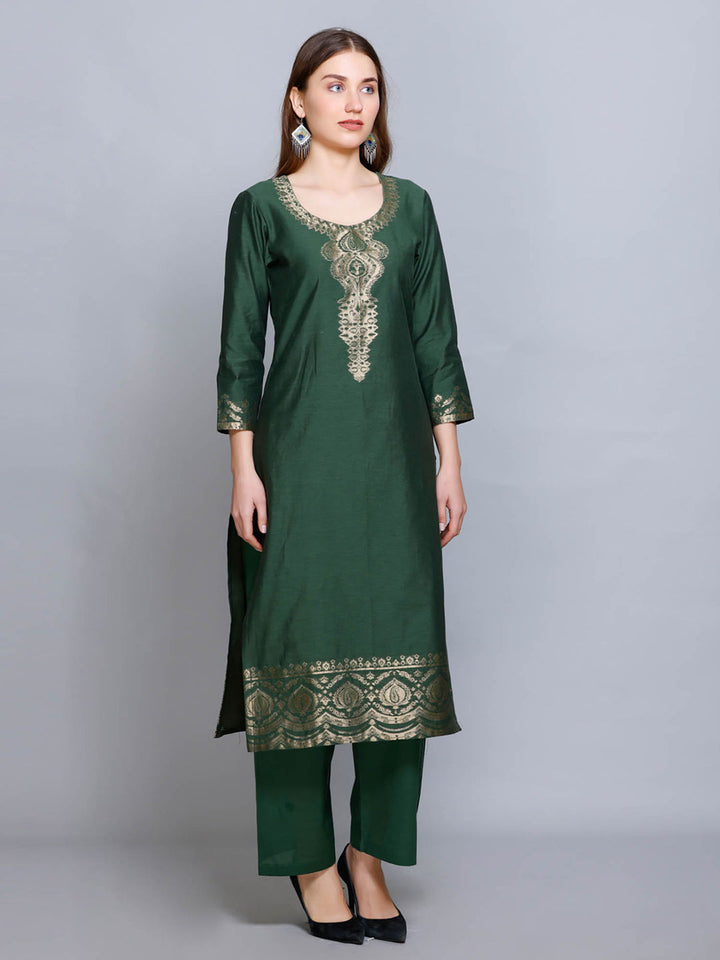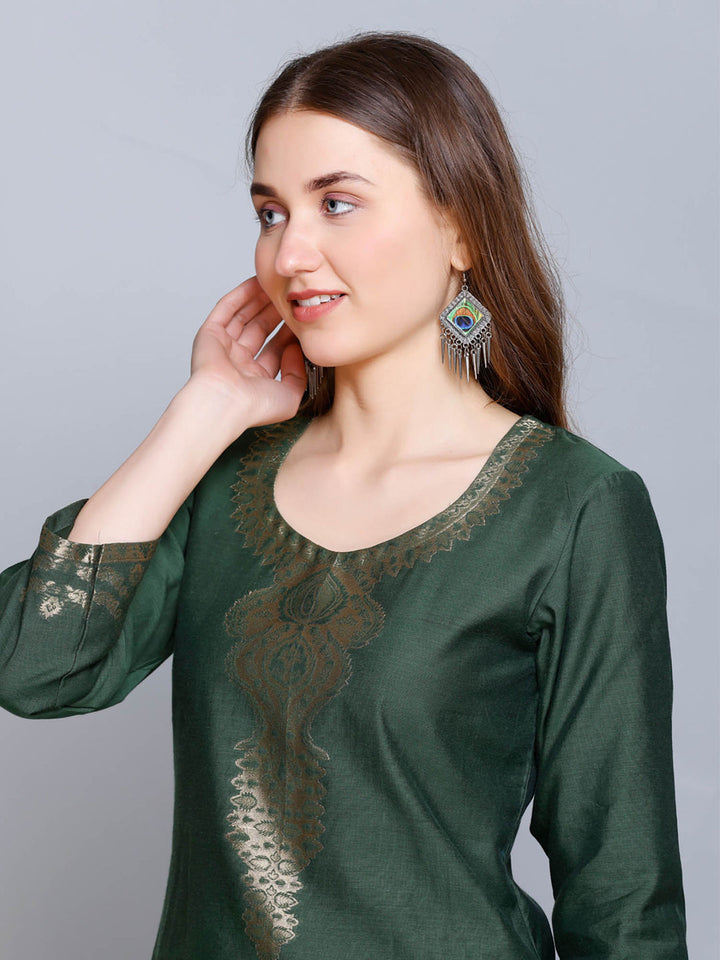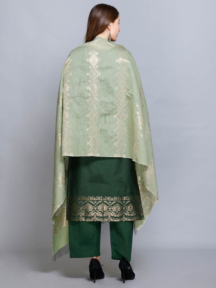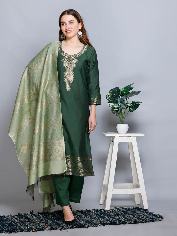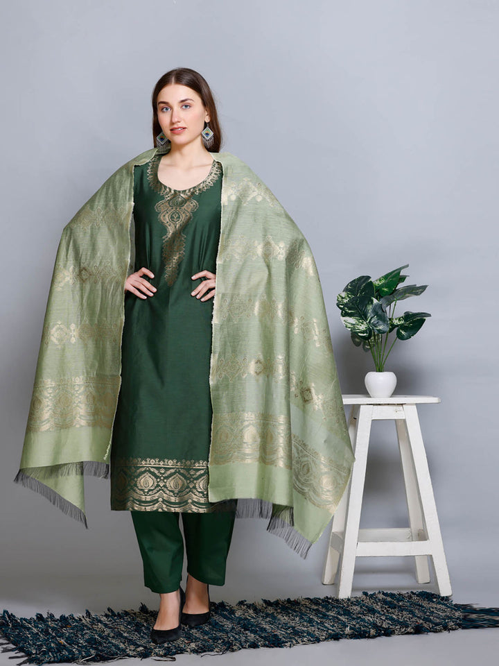 Cotton Silk Green Woven Kurta and Pant with Dupatta (Set of 3)