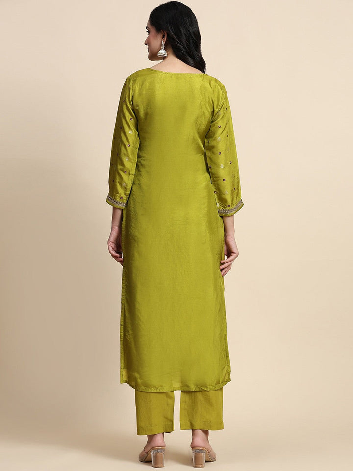 Ethnic Motifs Woven Design Sequinned Pure Silk Kurta With Trousers & Dupatta