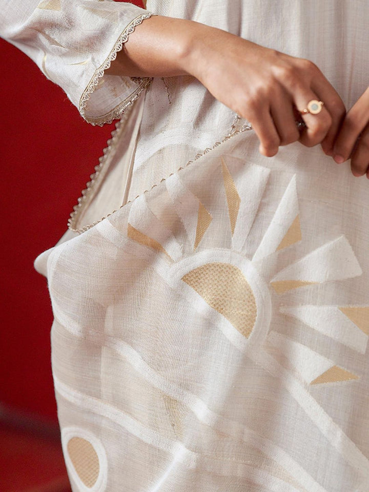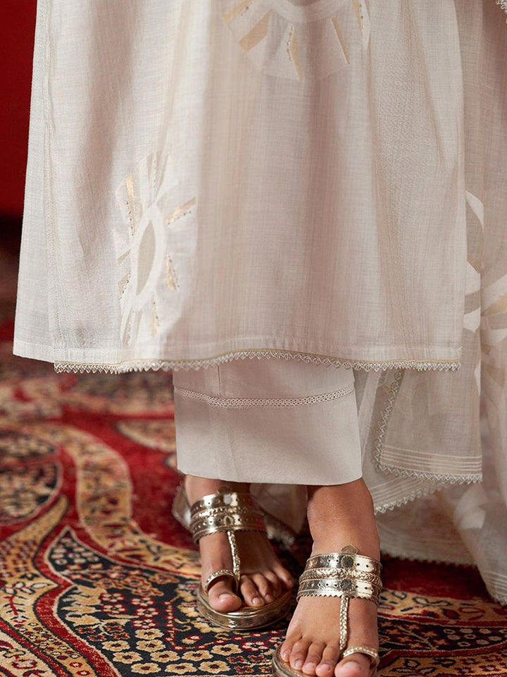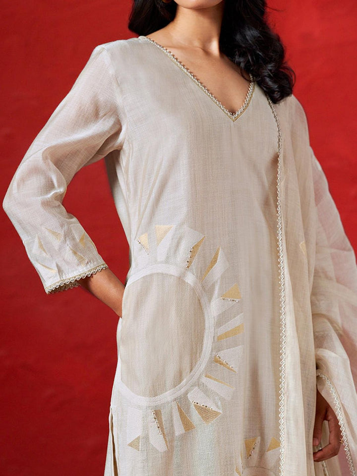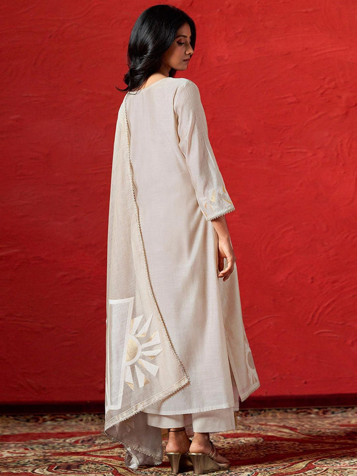 Fog Grey Woven Kurta with Pant and Dupatta (Set of 3)