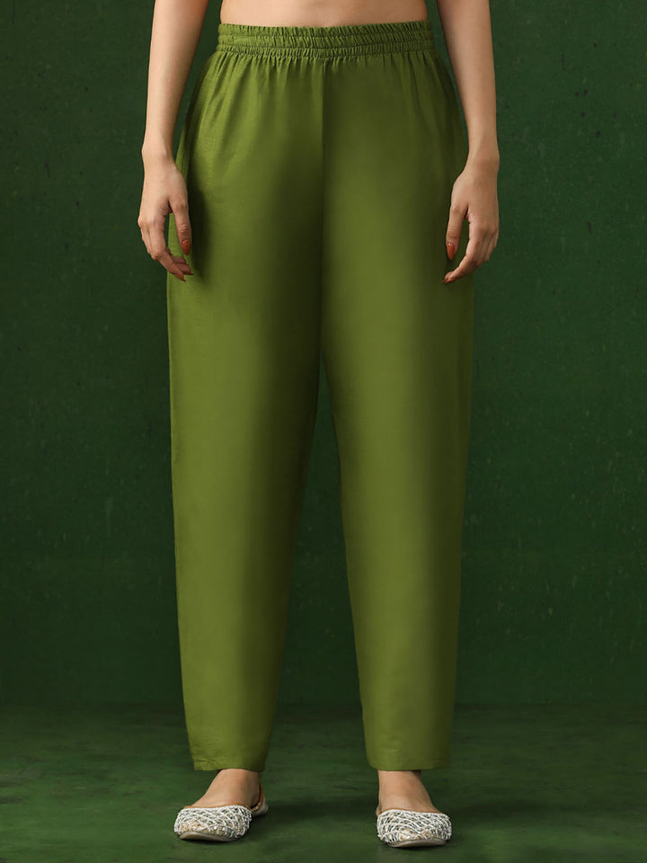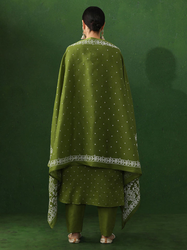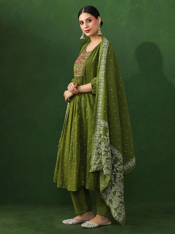 Green Embroidered A-Line Pure Cotton Kurta & Pant with Dupatta (Set of 3)