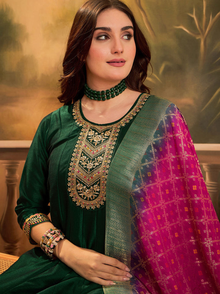Green Silk Blend Zari Sequence Embroidered Kurta Pant & Dupatta (Set of 3)