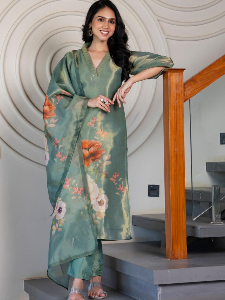 Pear Tissue Kurta with Pant & Dupatta (Set of 3)