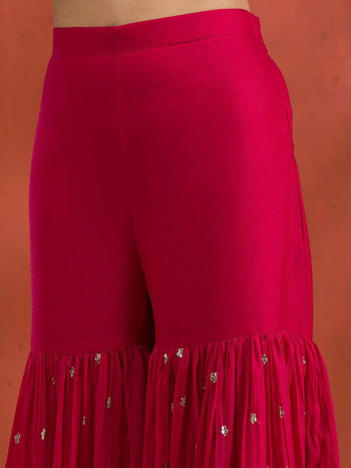 Rani Pink Silver Zari Work Georgette Readymade Kurta with Sharara & Dupatta (Set of 3)