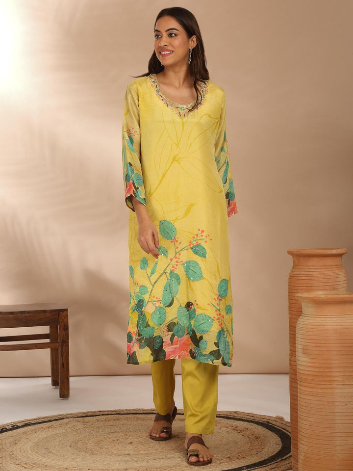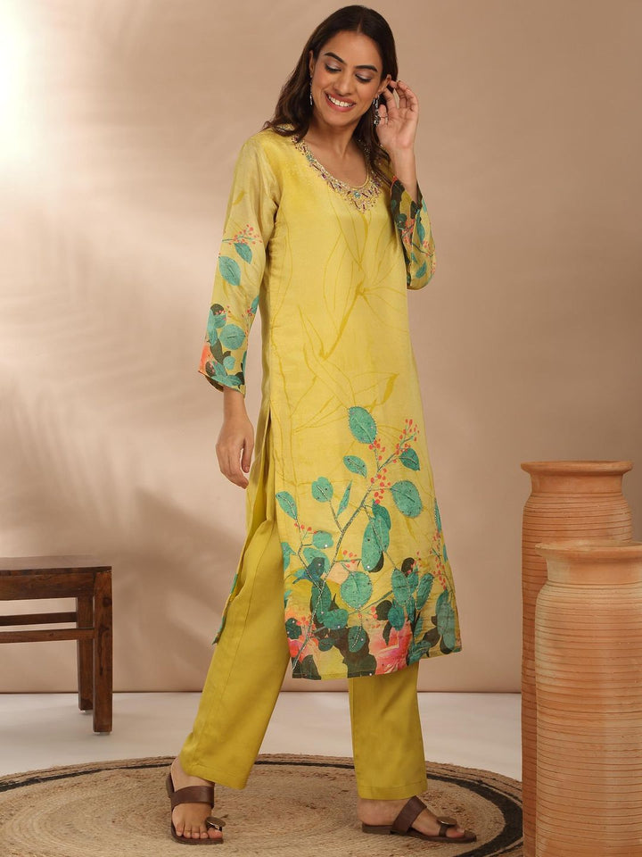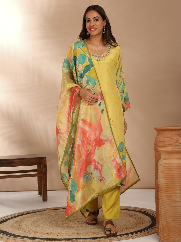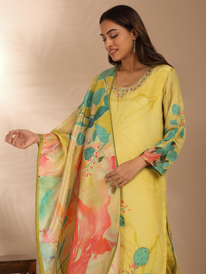 Tissue Printed & Embellished Straight Festive Kurta Pant with Printed Dupatta (Pant of 3)