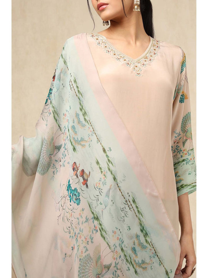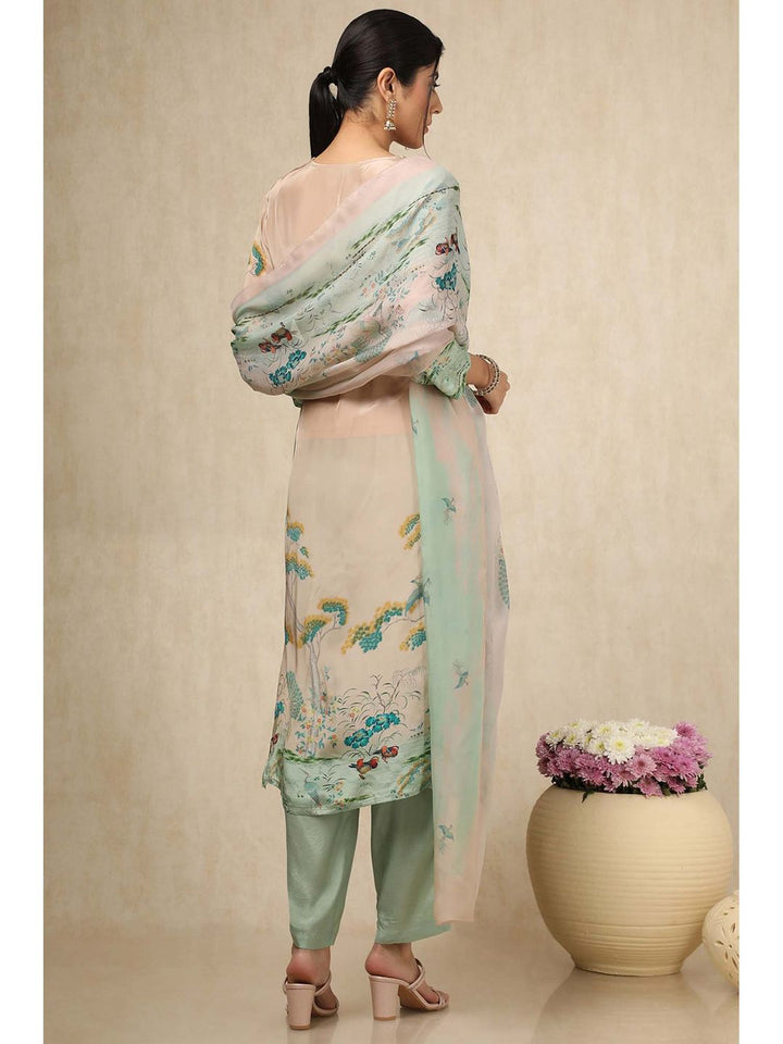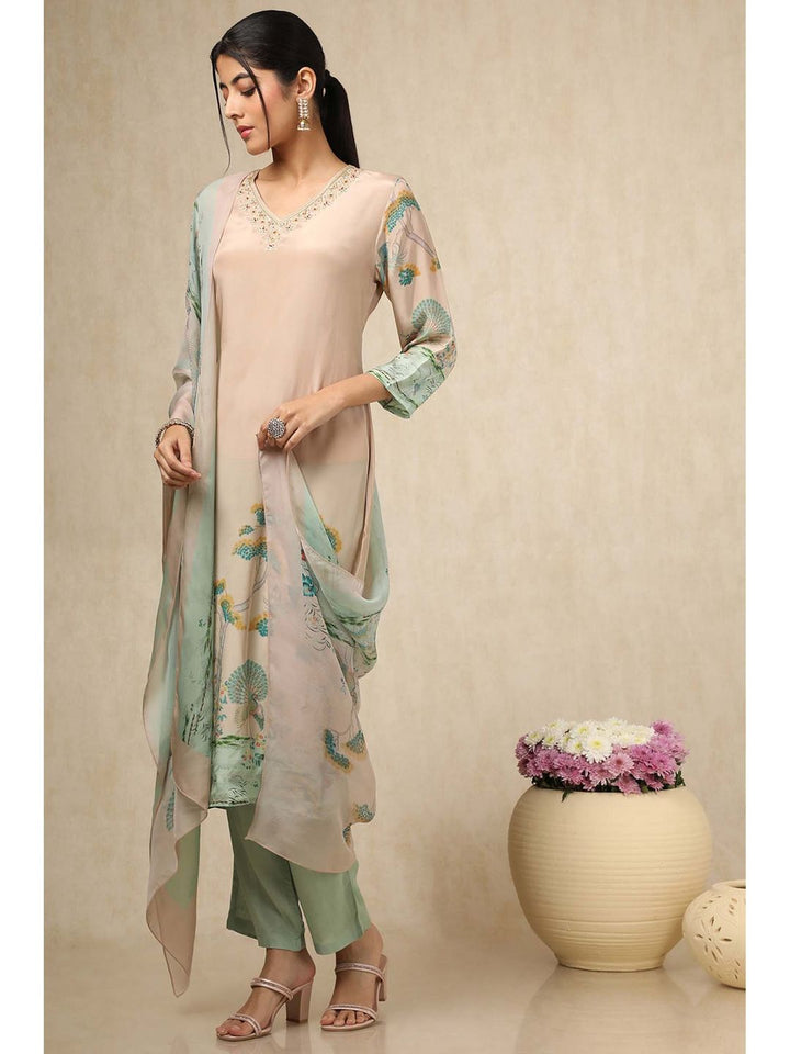 Women Beige Crepe Ethnic Motifs Kurta with Pant & Dupatta (Set of 3)