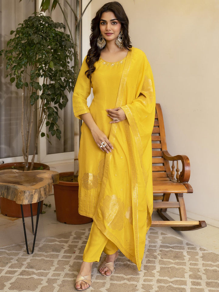 Women Embroidered Regular Zardozi Pure Silk Kurta with Trousers & With Dupatta