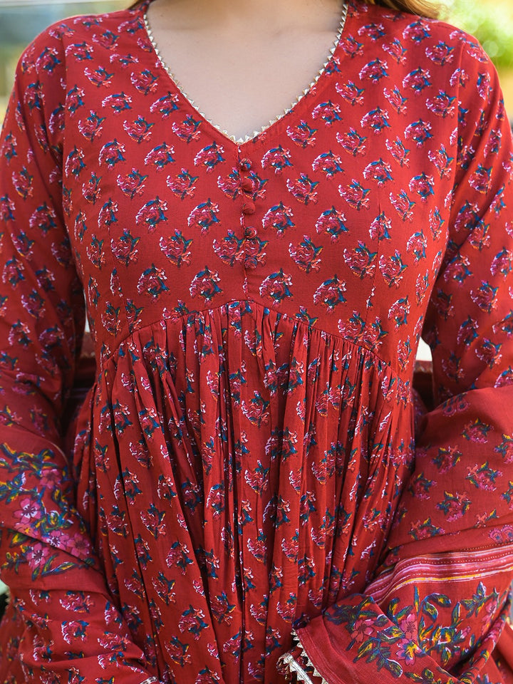 Women Ethnic Motifs Printed Regular Pure Cotton Kurta with Trousers & With Dupatta