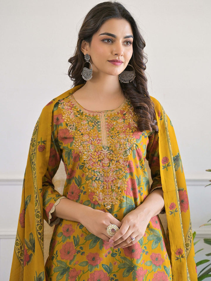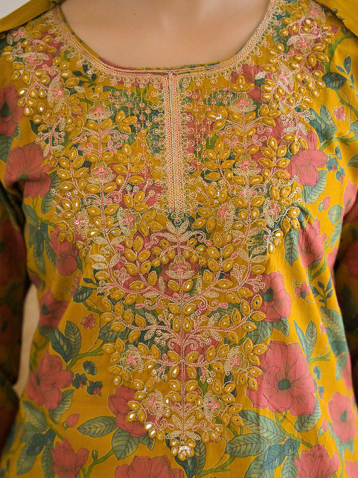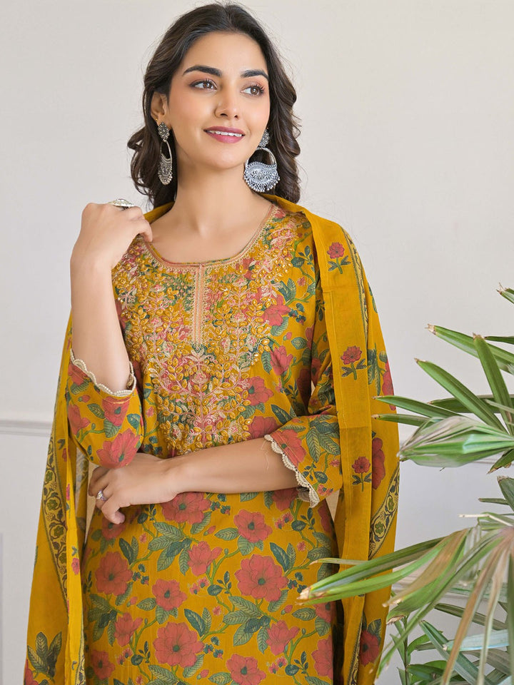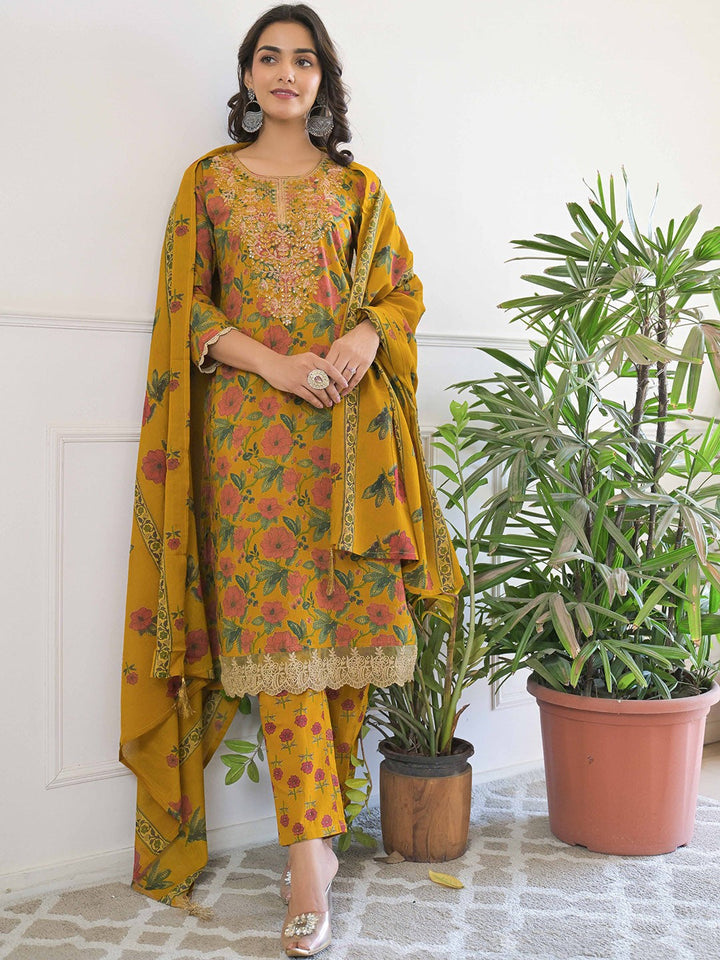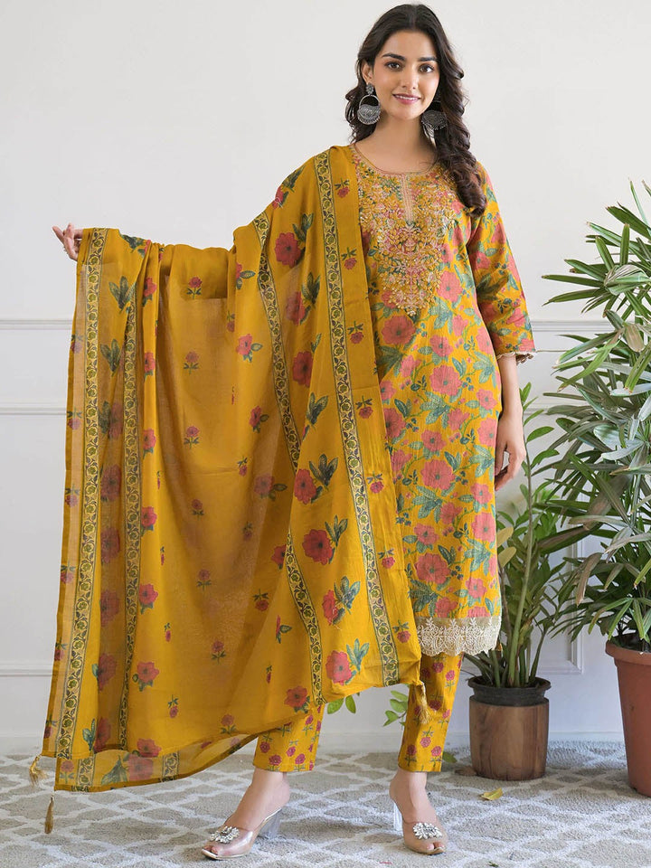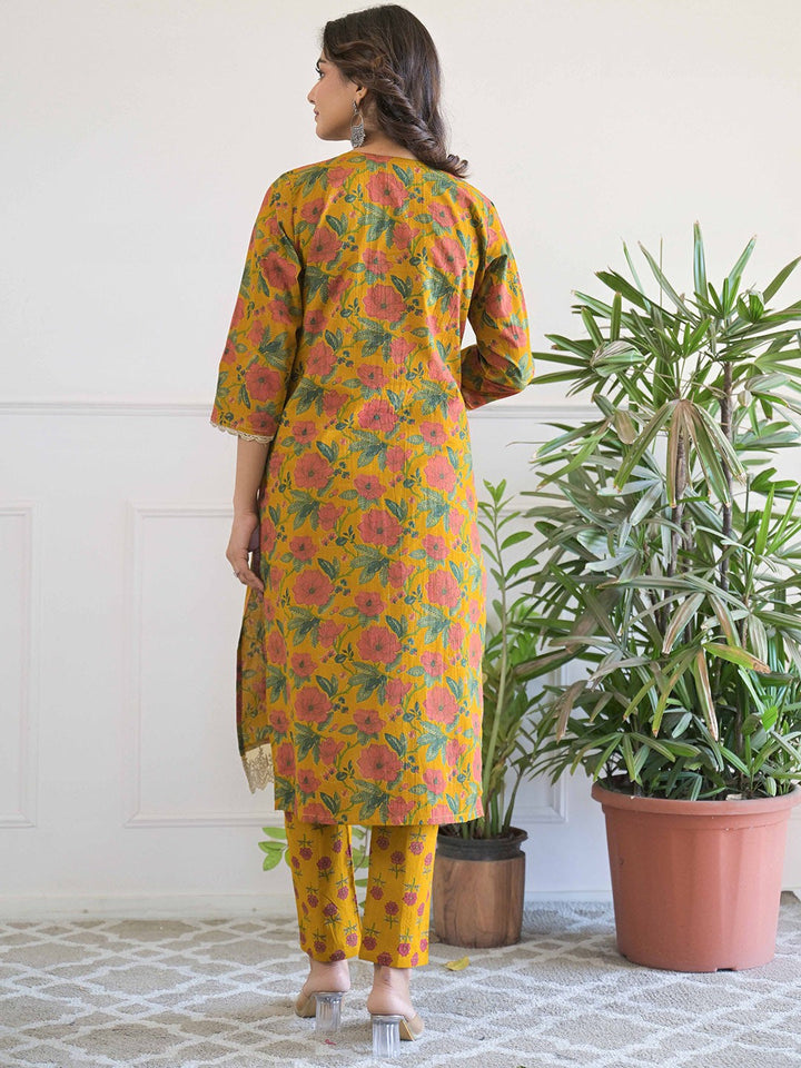 Women Floral Printed Regular Pure Cotton Kurta with Trousers & With Dupatta