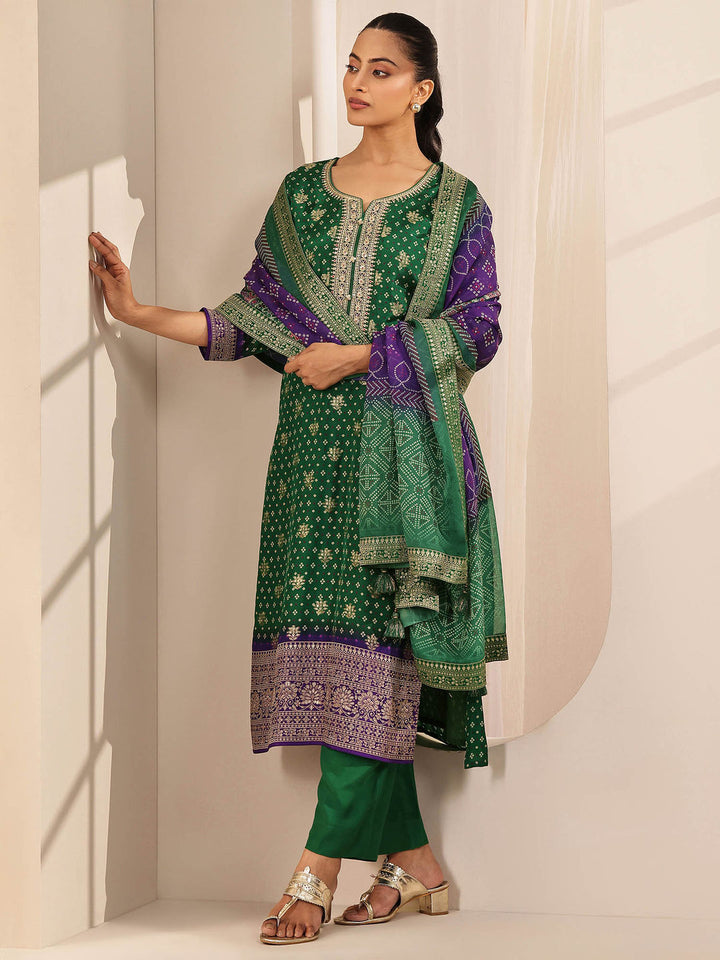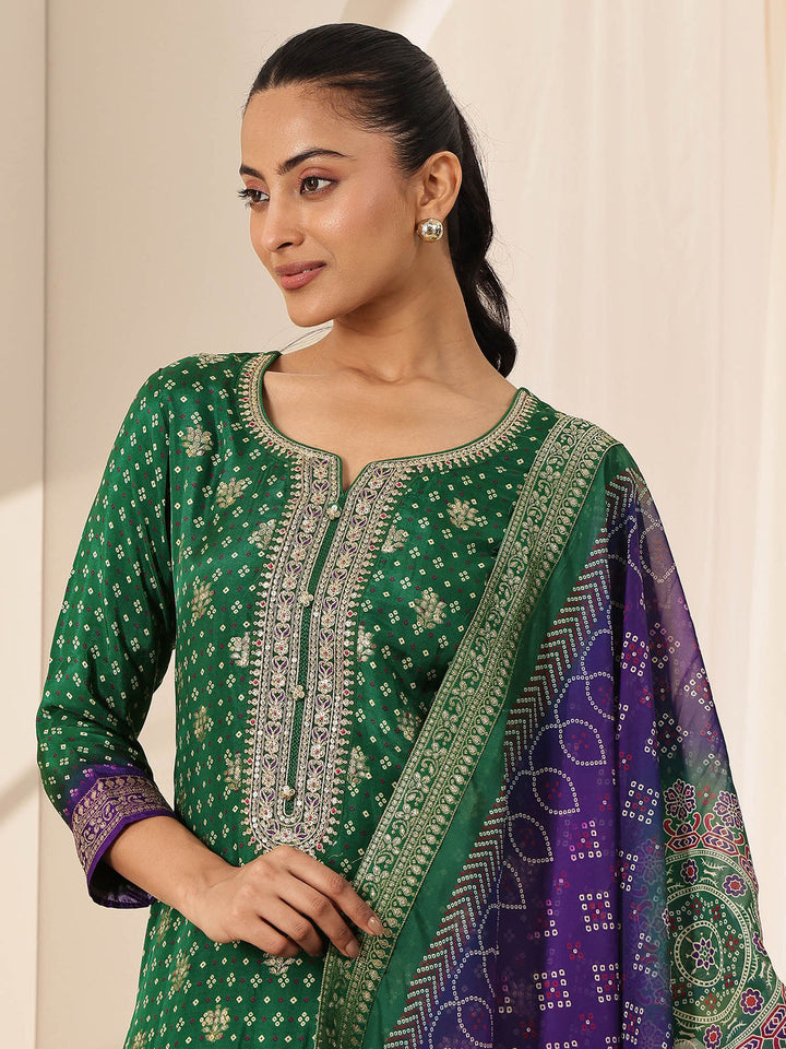 Women Green Embroidered Kurta with Pant and Dupatta (Set of 3)
